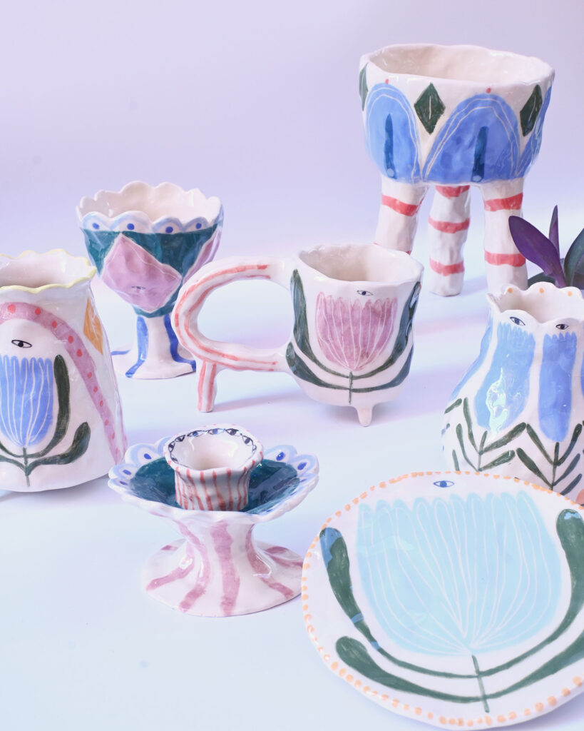 Je suis artisane céramiste à Lyon, je travaille la faïence au modelage et j’orne mes pièces de motifs colorés et naïfs. Je fais très souvent des marchés de potier-es ou des marchés artisanaux à Lyon… et ailleurs ! On peut me retrouver dans le Sud-Ouest pour un marché de céramique comme dans les Hauts de France pour un Salon International des Métiers d’Arts ! Mon atelier de création est au Plan sur la Comète au 6 rue sainte-marie-des-terreaux, Lyon. C’est aussi une boutique d’artisanes et artisans. Mes céramiques sont originales et biscornues.