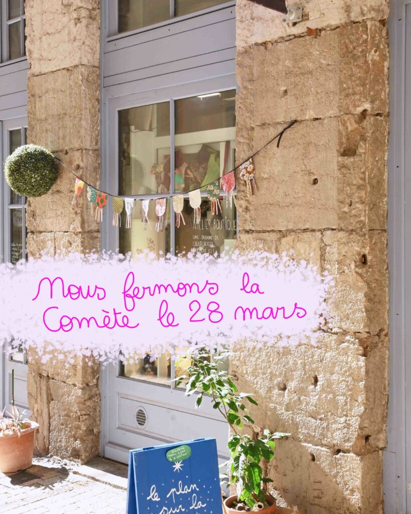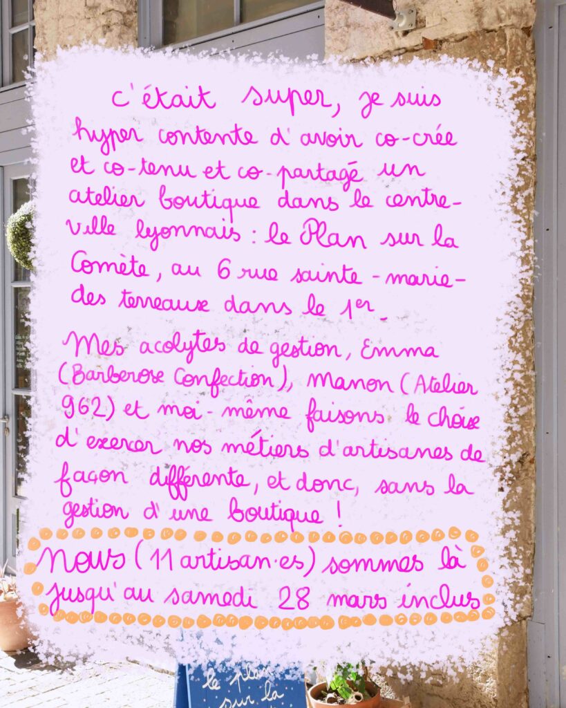 Nous fermons le Plan sur la Comète, l’atelier-boutique que j’ai cofondé avec Emma et Manon, le 28 mars 2026 inclus. Au 6 rue sainte-marie-des-terreaux Lyon 1.
